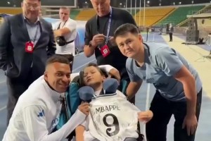 温情时刻!姆巴佩踩场时给阿拉木图的残疾小球迷签名并互动留念